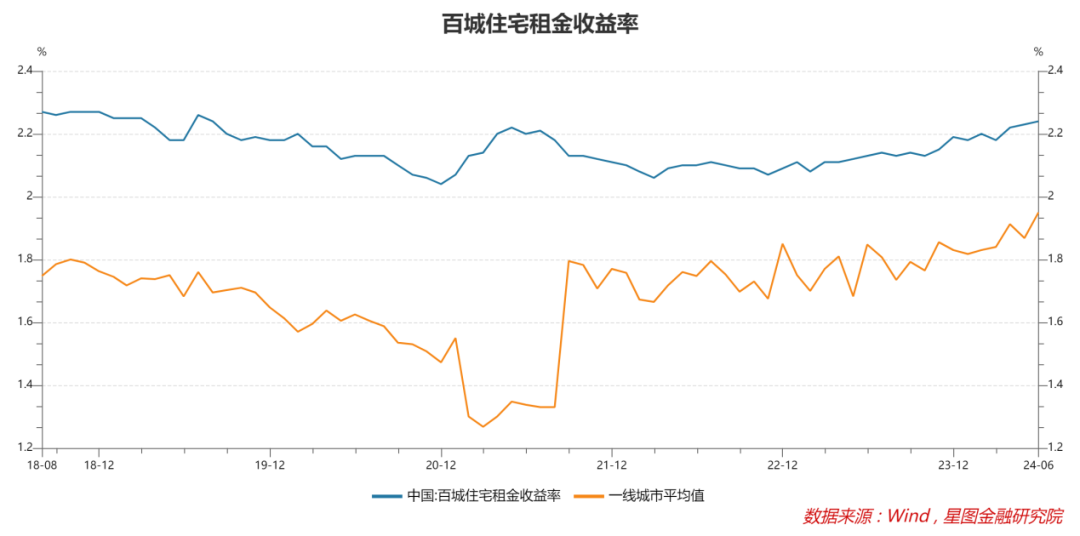 就财务可持续性看,最核心的要求是租金收益率大于利息成本。6月末,我国百城住宅平均租金收益率为2.24%,其中,一线城市平均为1.95%。虽然处于近年来较高水平,但综合考虑融资成本和运营成本后,在商业上仍然缺乏吸引力。