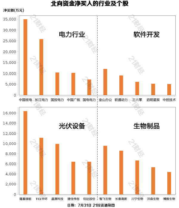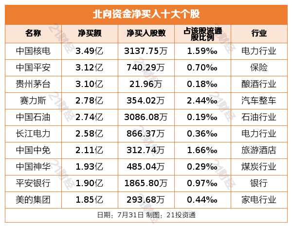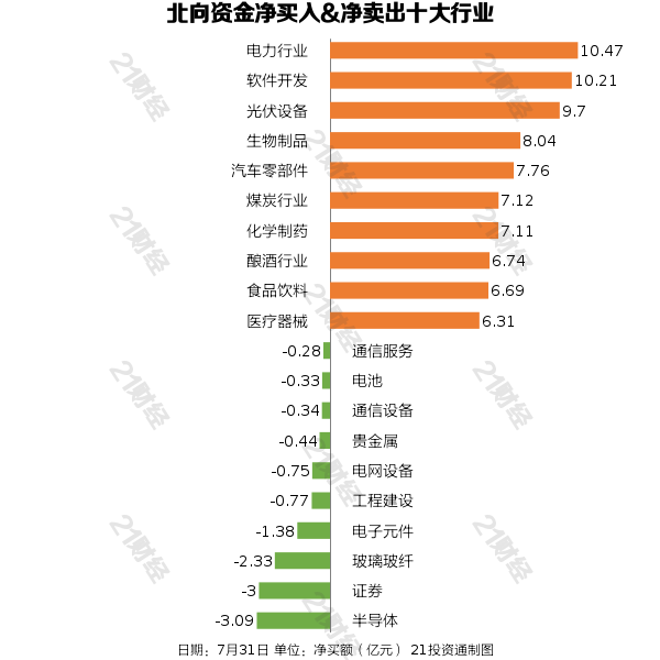 据21投资通智能监测,7月31日,北向资金净买入195.8亿元,其中沪股通净买入113.63亿元,深股通净买入82.17亿元。
