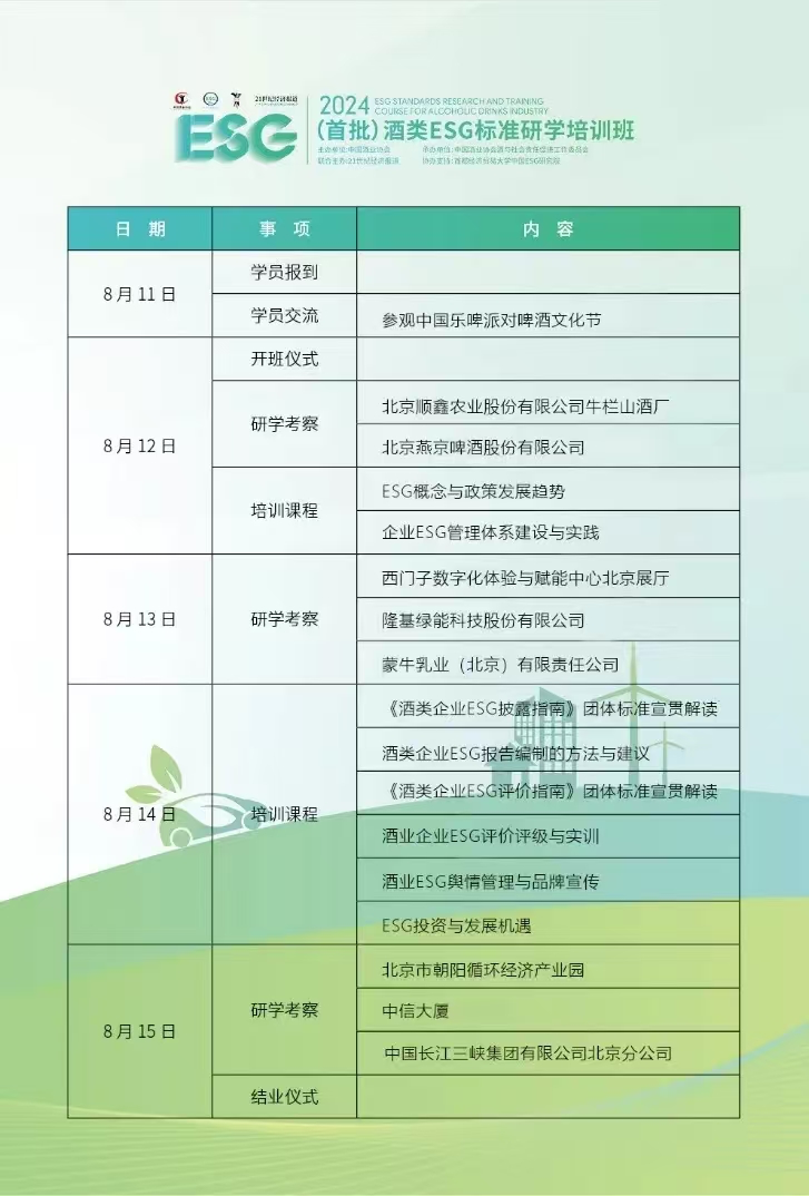 本次“高端智库看发展·走进百家ESG先锋”酒企ESG主题研学启动截至2024年8月6日,满额50人,满额截止。诚挚地邀请您与我们一起深入探讨酒企在ESG领域的发展之路。