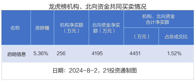 值得注意的是,机构和北向资金共同净买入了启明信息。