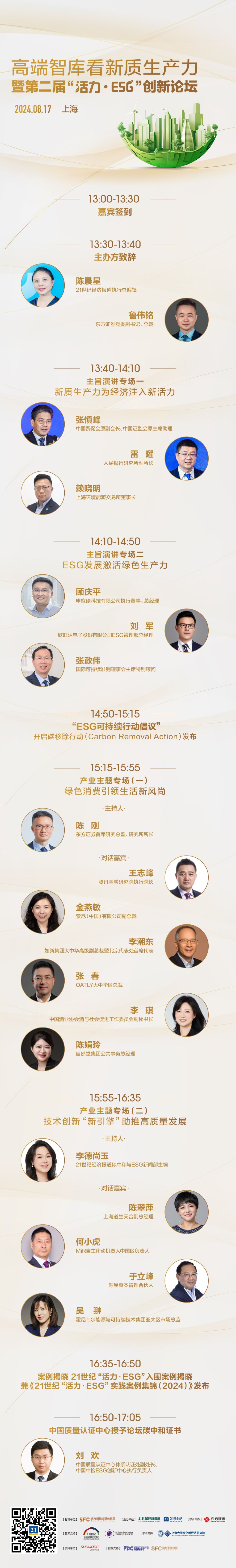 高端智库看新质生产力暨第二届“活力· ESG”创新论坛将于8月17日举办