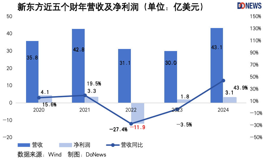 根据新东方公布的2025财年第一季度(2024年6月1日至2024年8月31日)的展望,该季度公司的净收入(不包括东方甄选自营产品和直播电商业务)将为12.55亿美元至12.84亿美元之间(约97.8-100.1亿港元),同比上升率为31%至34%之间。