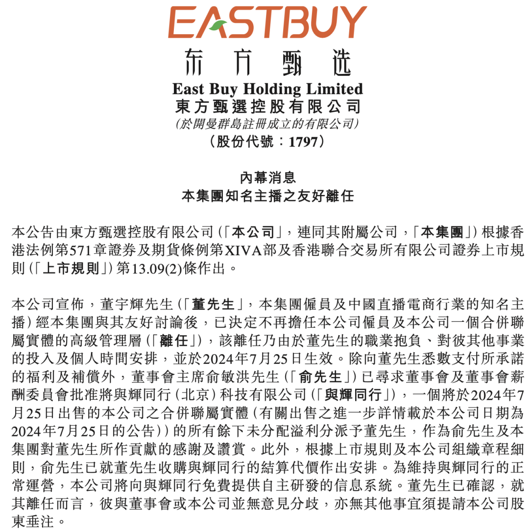 不久的将来,与辉同行将彻底独立出来,拥有自己的体系,那时候与辉同行与东方甄选,可能就是激烈竞争的对手了。