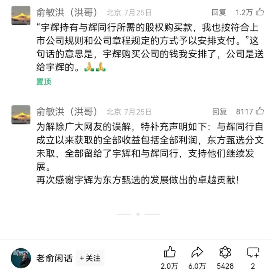 最赚钱的直播间送给董宇辉,俞敏洪回归基本盘