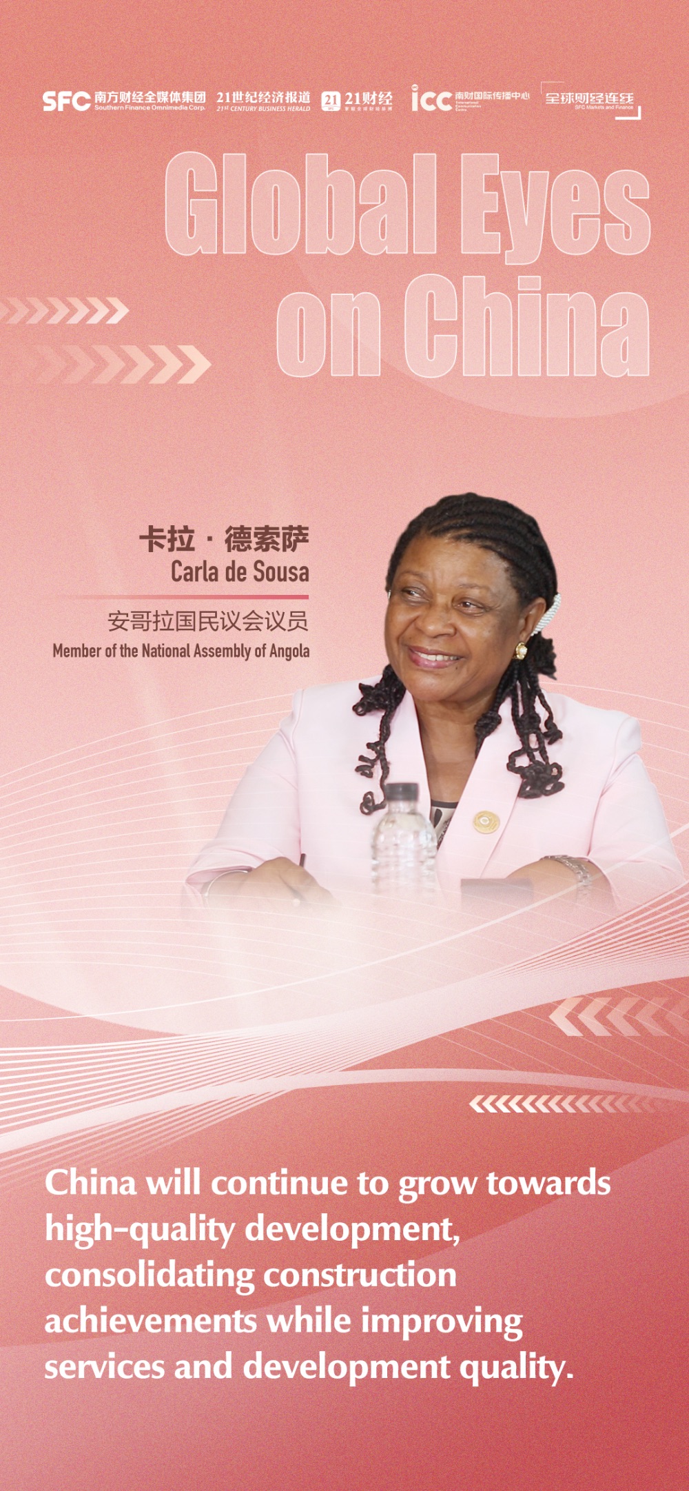 Carla de Sousa, a member of the National Assembly of Angola, shared her insights on infrastructure and strategic development with SFC reporters. She emphasized the importance of constructing both physical and intellectual pathways. "We should build not only the path in reality but also the path of ideas," she explained, highlighting the necessity of having a clear strategy and organization to achieve significant development milestones like China.