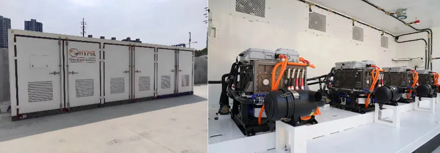 力源科技开发的柜式发电模块的额定功率为100kW,输出380V交流电;集装箱式模块的额定功率为1MW,输出10kV交流电。