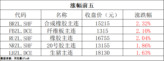 8月28日,国内商品期货收盘涨跌互现,合成橡胶、纤维板、橡胶涨超2%,20号胶、生猪涨超1%。