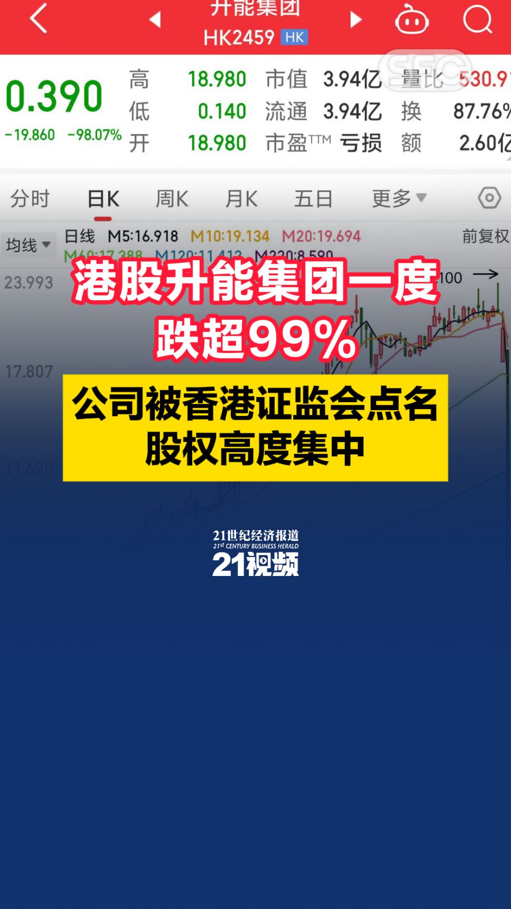 消息面上,升能集团被香港证监会点名股权高度集中。