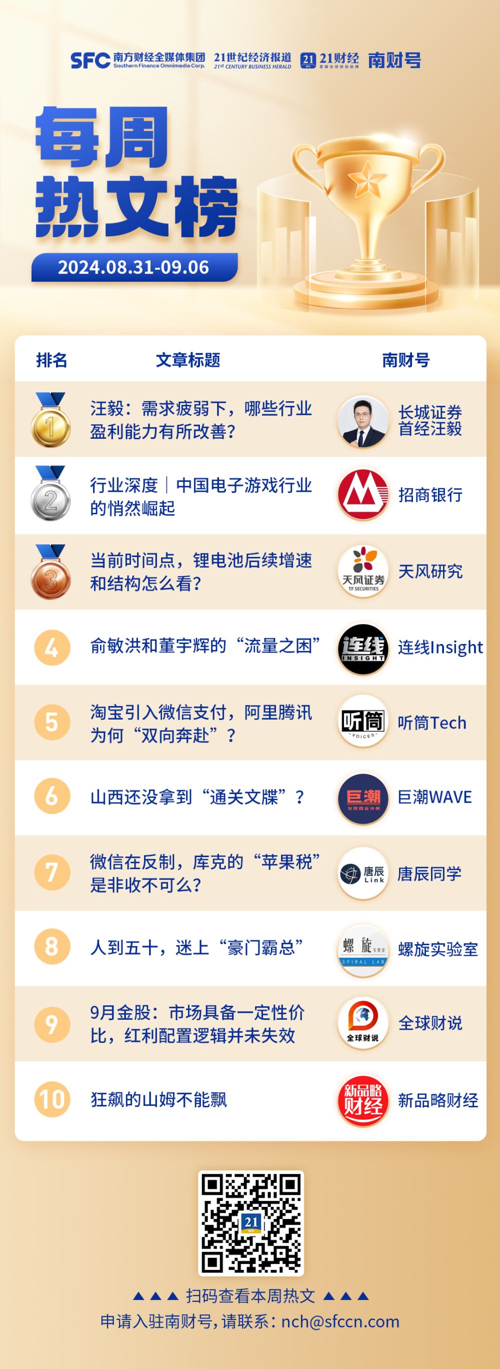 南财号每周热文丨汪毅:需求疲弱下,哪些行业盈利能力有所改善?