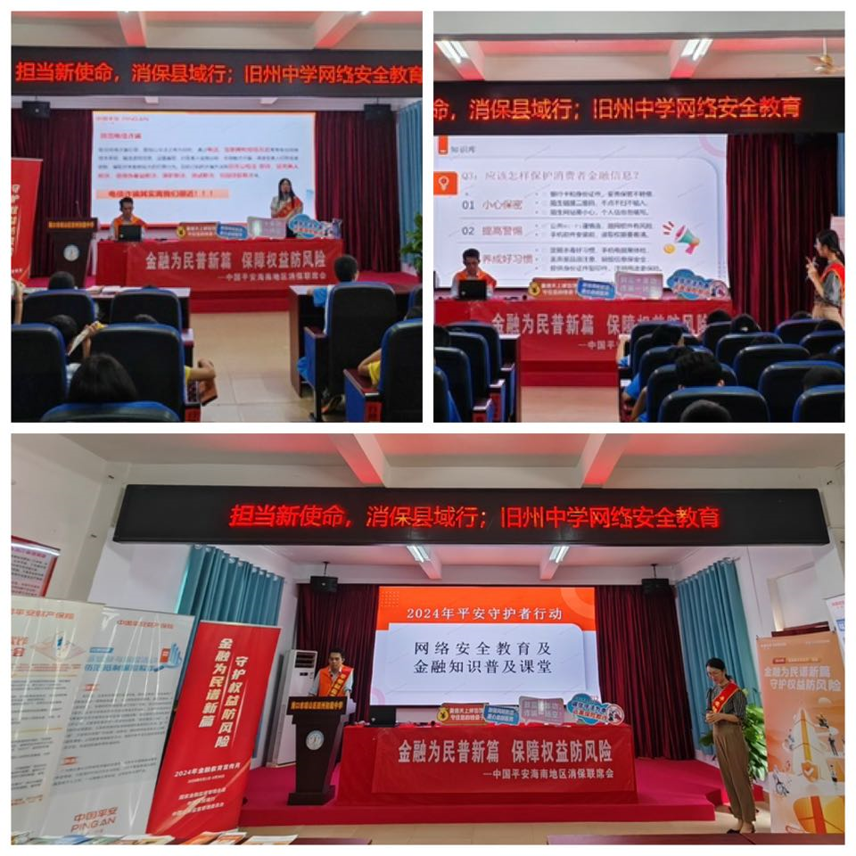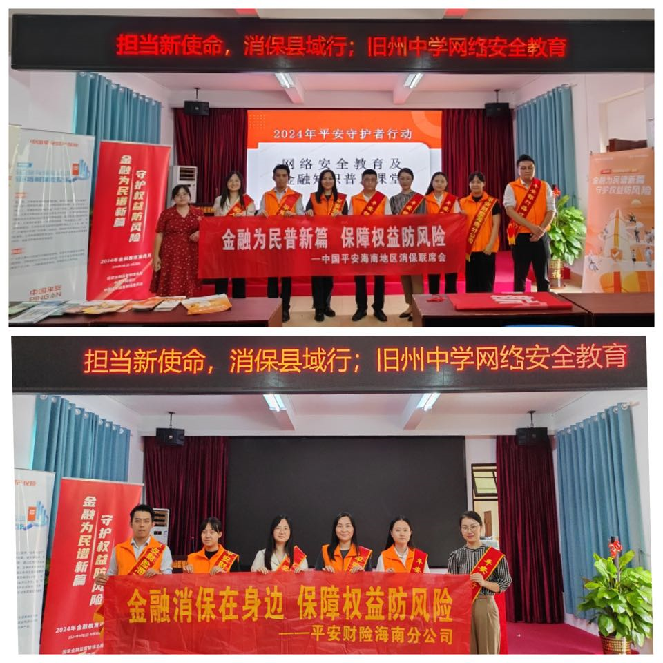 9月4日,平安财险海南分公司携手平安集团在琼子公司走进海口市旧州镇旧州中学开展“担当新使命 消保县域行”专项活动。为切实提升消费者金融素养及风险防范意识,平安守护者们准备了主题为“网络安全教育及金融知识普及”的专项课堂,旨在提高县域地区学生、教师及学校后勤管理队伍人群对网络诈骗、互联网信息安全及金融的认知与理解。