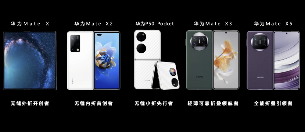 从五年前推出首款折叠屏手机华为Mate X至今,华为始终走在折叠屏技术的最前沿,不停完善折叠屏产品的形态以及体验,打造华为折叠家族品牌矩阵。目前已经有十多款折叠屏产品的华为折叠家族,俨然成为了全球折叠屏市场的标杆。