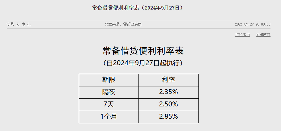 中国人民银行发布公告,将隔夜、7天、1个月常备借贷便利利率分别调整为2.35%、2.50%、2.85%。
