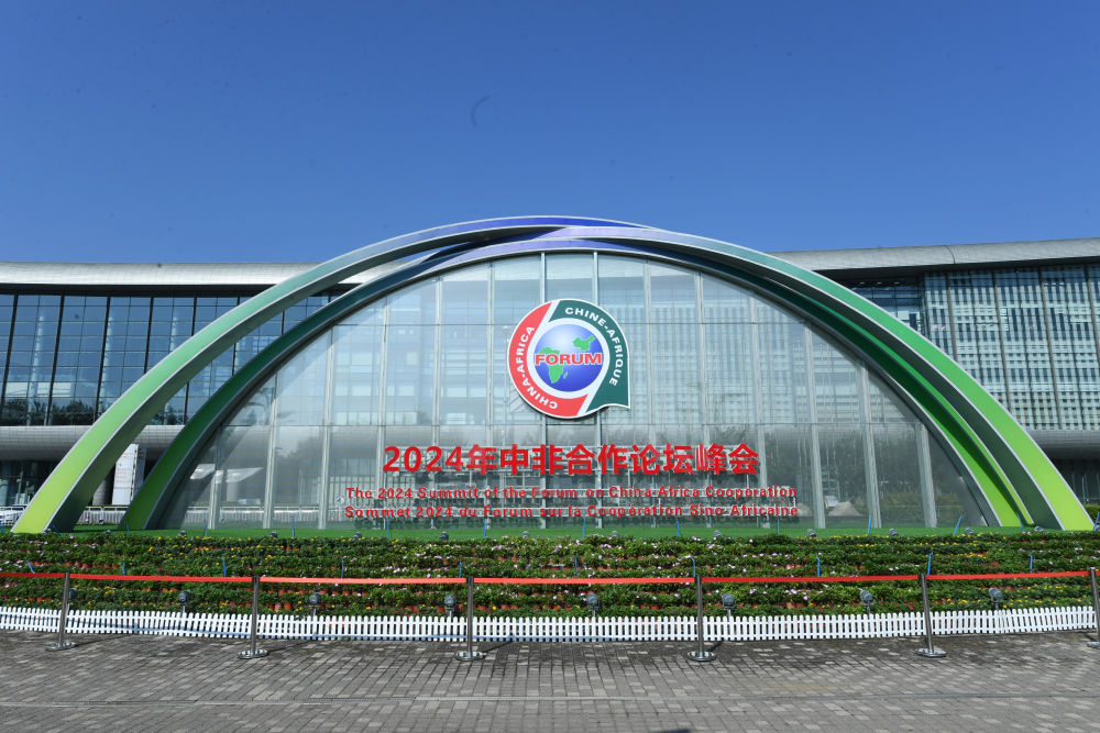 这是2024年8月29日在北京国家会议中心附近拍摄的2024年中非合作论坛峰会标识。 新华社记者 任超 摄