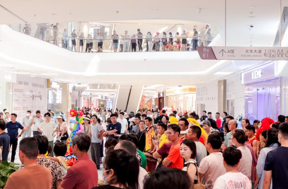 开业现场,人潮涌动。典礼结束后,随着天街大门缓缓打开,人群涌入商场,迫不及待地探索这个全新的购物天堂。