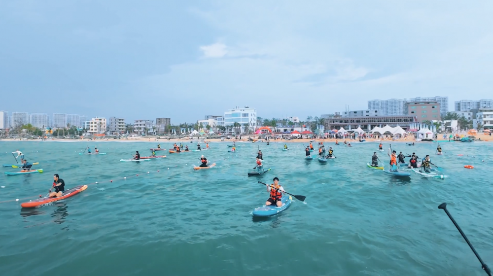2024海口市CITY SUP桨板嘉年华、2024海口市全民健身沙滩主题嘉年华,将“健身房”搬到了荣山寮,开展桨板竞速、水上接力、百人瑜伽、动感健身操、燃脂壶铃等丰富多彩的活动,叠加乐队演出、体操表演、沙滩游戏等文艺活动,市民游客争先享受快乐运动和动感音乐,体验别样的海岛假期。