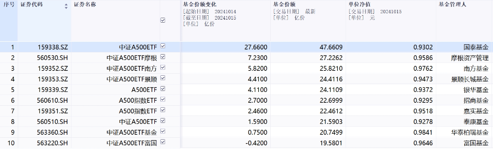 10月15日,首批10只中证A500ETF集体上市,“首秀”便全线“飘绿”,10只单日“吸金”约50亿元。