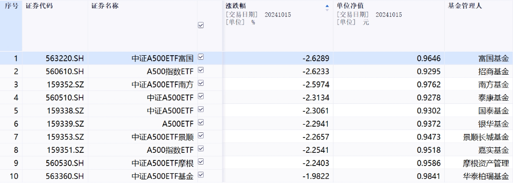 从单位净值涨跌来看,截至10月15日,中证A500ETF净值均跌破1元。