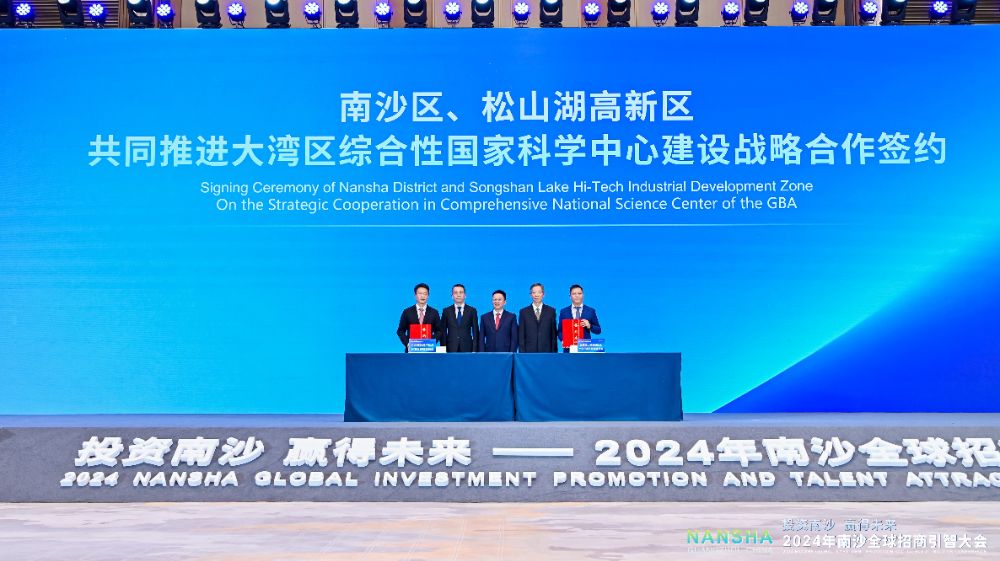 在10月18日举行的“投资南沙 赢得未来”2024年南沙全球招商引智大会上,南沙区与松山湖高新区签署战略合作协议,共同推进大湾区综合性国家科学中心建设,打造具有国际影响力的科技创新高地。