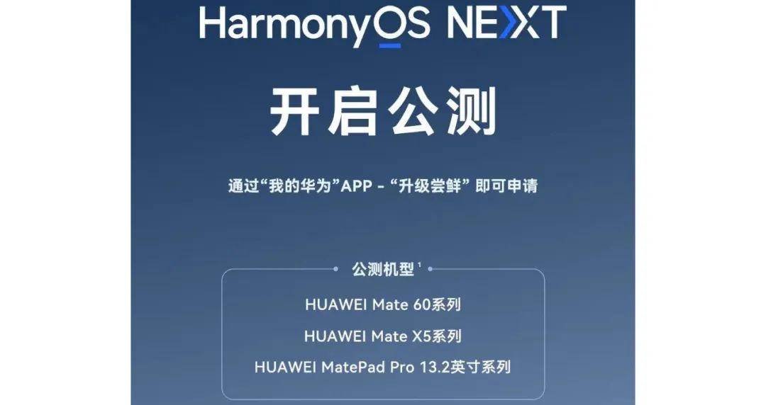 首批公测机型,涵盖三大系列,华为Mate 60系列、华为Mate X5系列和华为MatePad Pro 13.2英寸系列。相较此前传言的6款,少了一半。