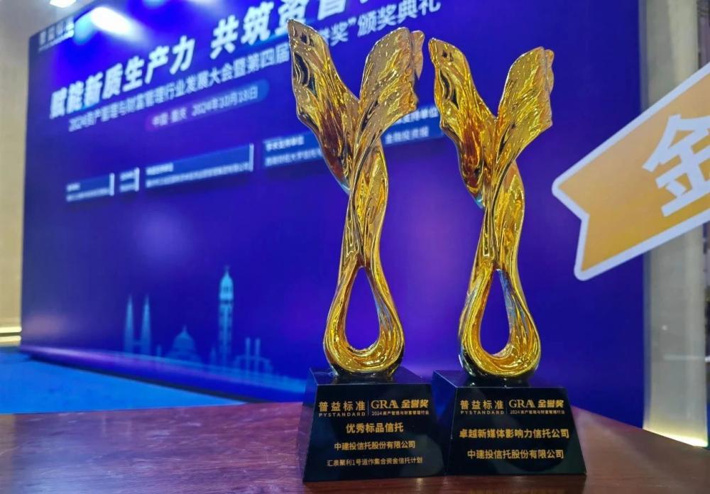 近日,由普益标准主办的“2024资产管理与财富管理行业发展大会暨第四届金誉奖”颁奖典礼在重庆举办。凭借在标品信托领域的突出实践及新媒体领域的影响力,中建投信托荣获优秀标品信托奖及卓越新媒体影响力信托公司奖等两项荣誉。