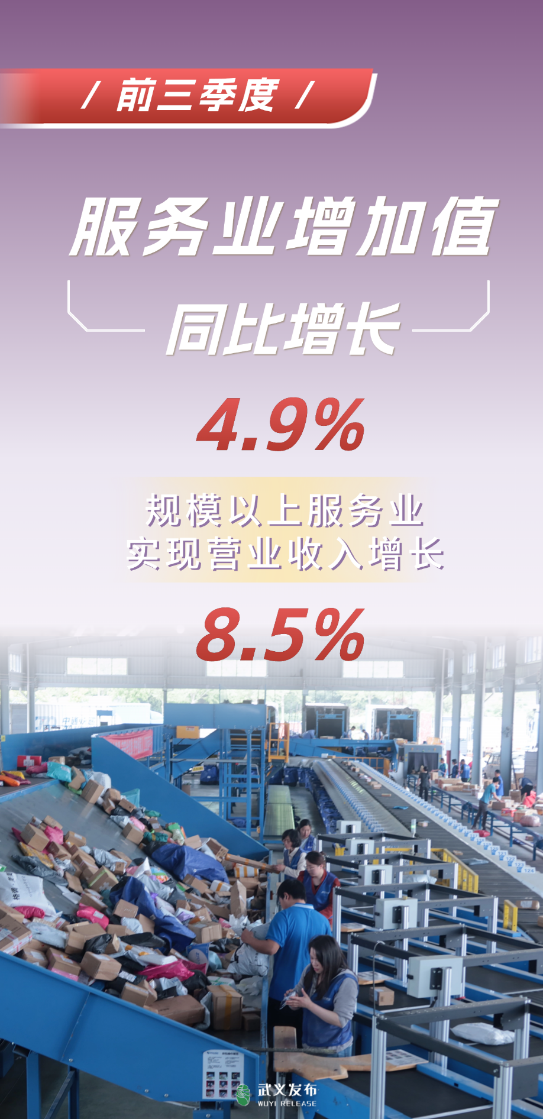 前三季度,服务业增加值同比增长4.9%。分行业看,交通运输、仓储和邮政业,金融业,营利性服务业增加值分别增长7.5%、6.5%和5.6%。规模以上服务业实现营业收入10.33亿元,增长8.5%。