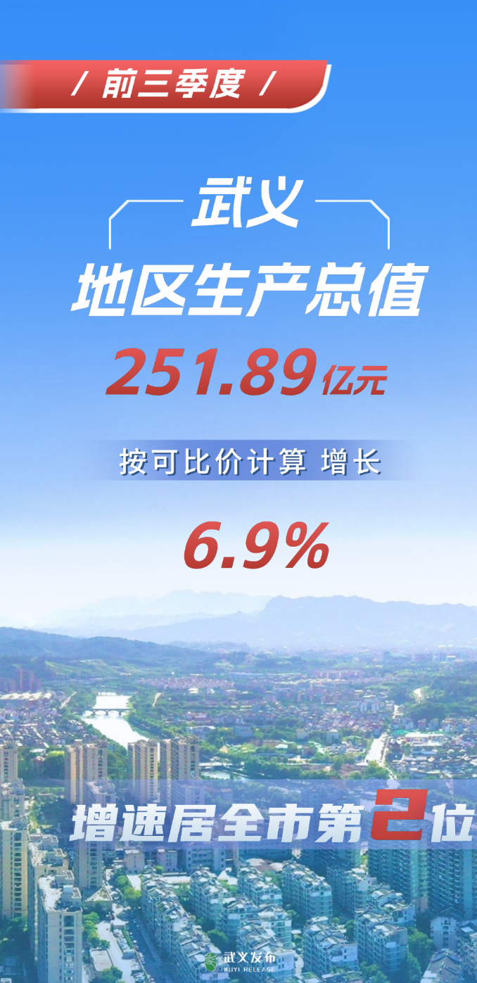 根据地区生产总值统一核算结果,前三季度全县地区生产总值251.89亿元,按可比价计算,增长6.9%,增速位居全市第二,分别高于全国、全省、全市2.1、1.5、0.8个百分点。分产业看,武义县第一产业增加值10.62亿元,增长5.2%;第二产业增加值121.14亿元,增长9.1%;第三产业增加值120.13亿元,增长4.9%。三次产业对全市GDP增长的贡献分别为3.7%、61.1%、35.2%。