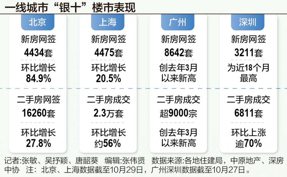 9月底以来,楼市迎来一系列重磅政策“组合拳”,有超40个省市发布楼市新政超50次。如今“银十”楼市已近尾声,新政效果如何?未来呈现怎样的趋势?21世纪经济报道记者对北上广深一线城市进行了深度调研。