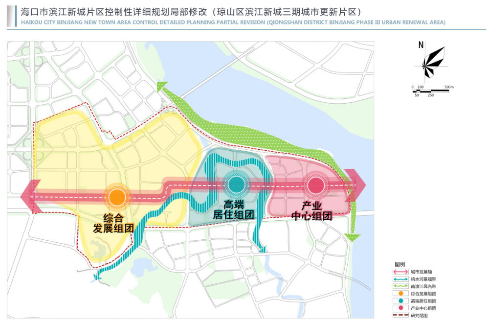 滨江新城三期更新片区规划北至滨江路,西至响水河,南至新大洲大道,东至滨江路,主要为商业商务及住宅功能,规划打造集中的大型商业+酒店+产业集群,塑造区域地标建筑+产业桥头堡。