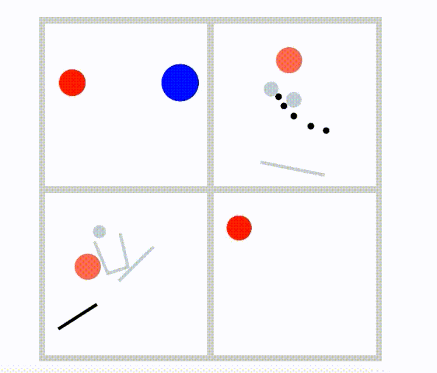 以最简单的匀速直线运动为例,当模型学习了不同速度下小球保持匀速直线运动的训练数据后,给定初始几帧,要求模型生成小球在训练集速度区间内匀速直线运动的视频,随着模型参数和训练数据量的增加,生成的视频逐渐更符合物理规律。