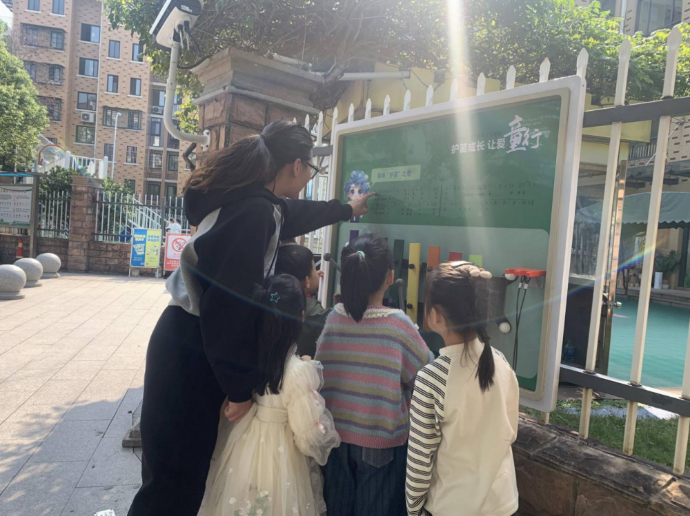 近日,“护苗之歌”在浙江省金华市武义县正式发布。在新建完成的熟溪街道“扫黄打非”进基层点位上,武义县创造性地将“护苗之歌”敲琴互动区设置在栖霞幼儿园围墙外学生和家长上学的必经之路上,每到放学时间,孩子们就围着“护苗之歌”互动区敲击音符,“让我们携手同行,用爱守护心中的界碑,‘护苗’成长”,优美的音乐旋律引导全社会共同奏响“护苗”乐章。