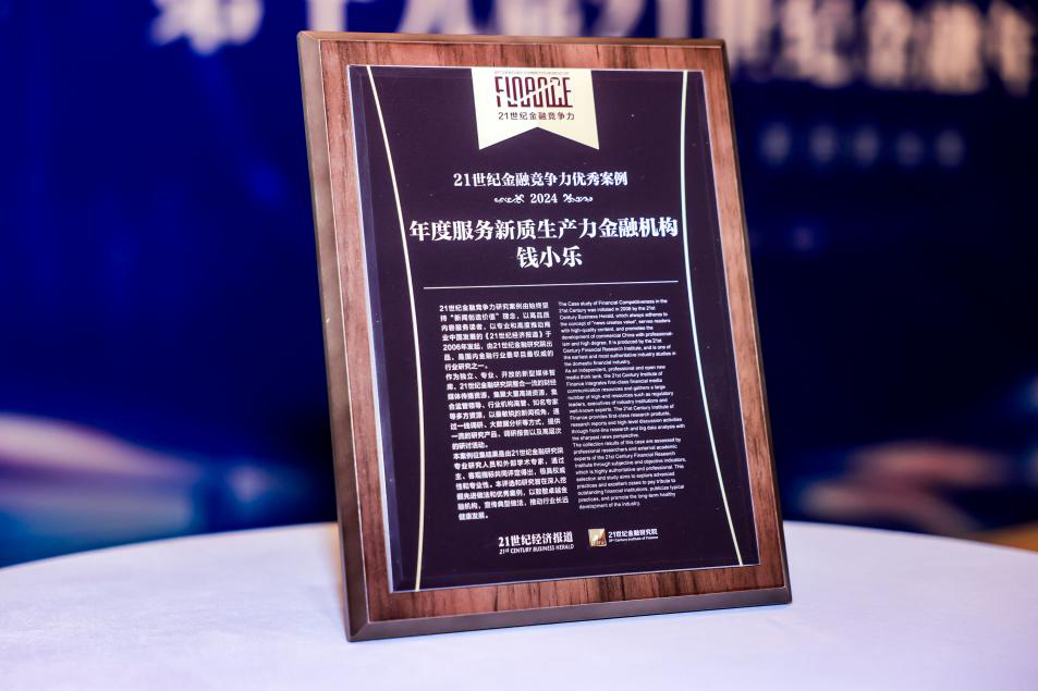 据了解,“2024年21世纪金融竞争力优秀案例”由21世纪经济报道依托粤港澳大湾区财经数据中心,联合21世纪金融研究院、南财金融终端,自9月18日通过多渠道开放征集。申报通道关闭后,组委会组织专家团队对超过百家的申报案例开展了综合评定,最终优秀案例名单是专家团队根据客观指标和主观指标共同评定得出,涵盖综合类、服务类和产品类三个方向。名单显示,钱小乐入选服务类“年度服务新质生产力金融机构”。