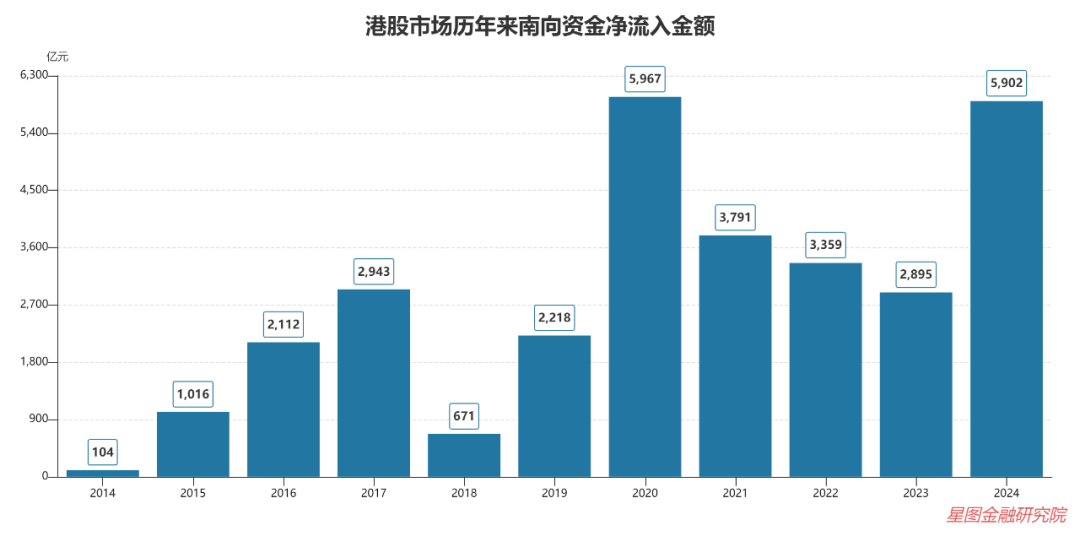 今年以来(至11月12日),南下资金净流入港股市场5902亿元,较前两年有显著提升,全年来看,大概率超越2020年水平,创历史新高。数据上看,截止2024年6月,外资、香港本地资金、内资在港股的持股比例大约各占三分之一。结构上看,内资持股占比快速提升,从2018年的约19%提升至当前的34%,吃掉的主要是外资的份额。