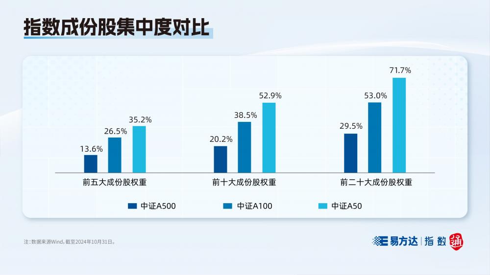 但在成份股的权重分布上,三只指数则拥有自己的“个性”。