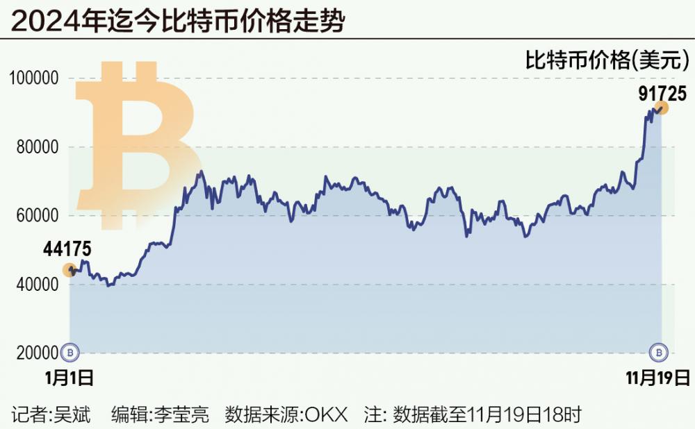 OKX研究院高级研究员赵伟对记者表示,根据OKX行情数据,11月18日中午,比特币价格再次突破9.2万美元,持续引发市场关注。这一轮比特币和加密市场的上涨受到美国大选结果的影响,特别是特朗普在竞选期间对加密货币的积极态度,激发了更多投资者的兴趣,并推高了比特币的市场热度。大选结果公布后,美联储的降息和比特币现货ETF的资金流入进一步推动了市场情绪。