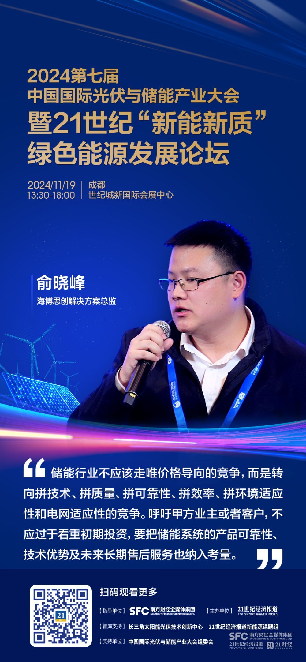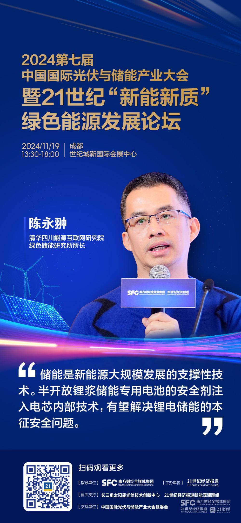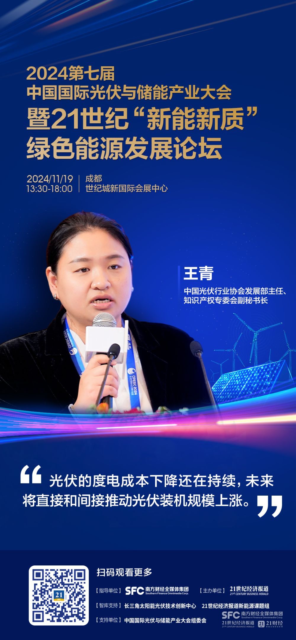 11月19日,由南方财经全媒体集团指导、21世纪经济报道主办、中国国际光伏与储能产业大会组委会支持,长三角太阳能光伏技术创新中心和21世纪经济报道新能源课题组作为智库支持的2024第七届中国国际光伏与储能产业大会暨21世纪“新能新质”绿色能源发展论坛在成都召开。