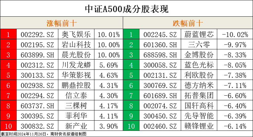 11月26日,中证A500指数(000510.CSI)连跌三个交易日,报4524.87点。14只跟踪指数的ETF也继续收跌。