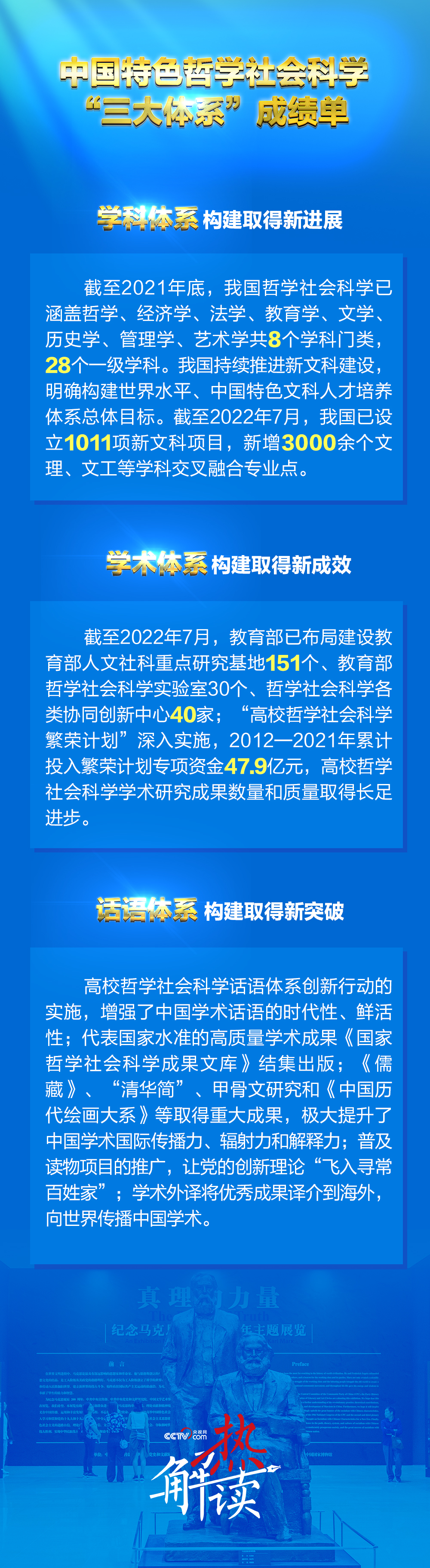 近年来,我国马克思主义理论、中共党史党建学等学科建设不断成熟,习近平新时代中国特色社会主义思想的体系化研究和学理化阐释广度和深度不断拓展,中国哲学社会科学在学科体系、学术体系、话语体系建设方面均取得亮眼成绩。