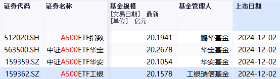 值得注意的是,4只中证A500ETF于今日上市,至此,已有21只跟踪中证A500指数的ETF上市。最新数据显示,上述21只ETF合计规模达2023.18亿元。