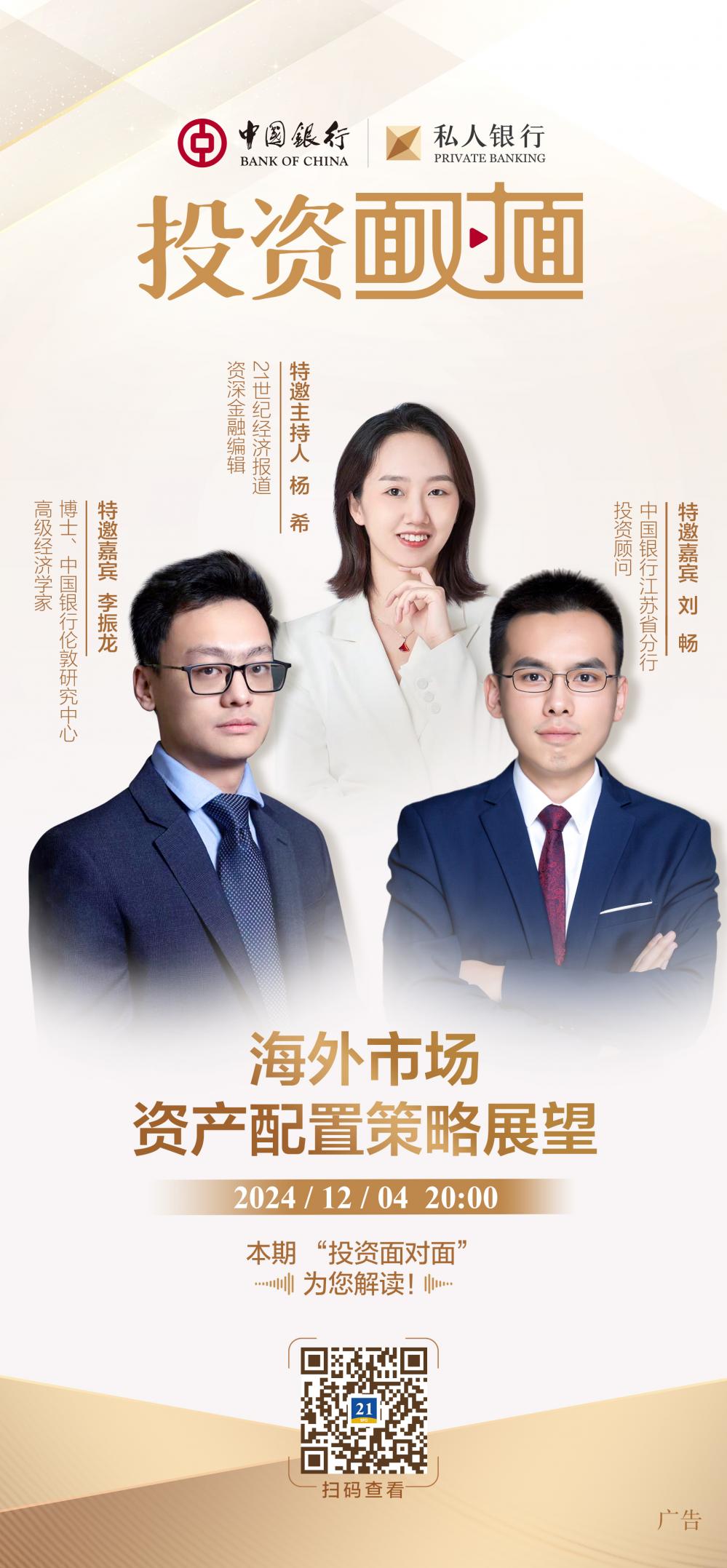 近期境内外经济金融热点事件频出,全球大类资产涨跌不一。国内市场方面,一揽子金融增量政策落地后,市场信心呈现企稳回升态势。如何把握政策环境变化之下的投资机遇?海外市场方面,随着美国、日本大选尘埃落定,主要经济体经济与货币政策将何去何从?股市、债市、汇市如何走向?在充满不确定性的市场中,投资者应如何做好资产组合和动态调整?