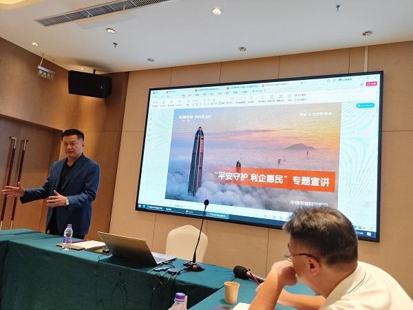 活动现场,平安财险儋州中心支公司总经理张波向当地企业讲解平安守护利企惠民主题内容,详细介绍了适合中小企业的保险产品和服务,通过生动的案例讲解,帮助企业了解如何通过保险手段降低经营风险,保障企业的稳健发展。活动现场反响良好,与会者们认真聆听,会后共同开展保险交流。
