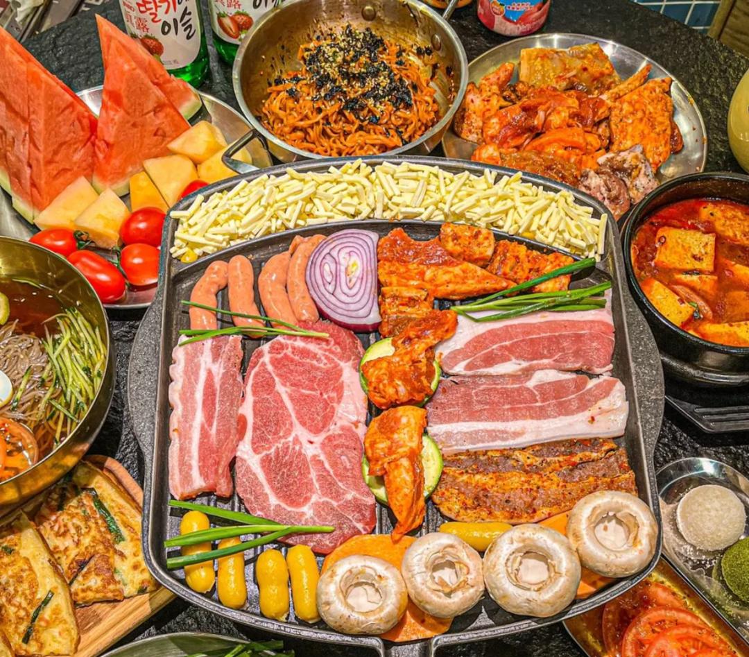 在此基础上,这批自助烤肉又增加了拌饭、披萨、粉面等主食的比例。