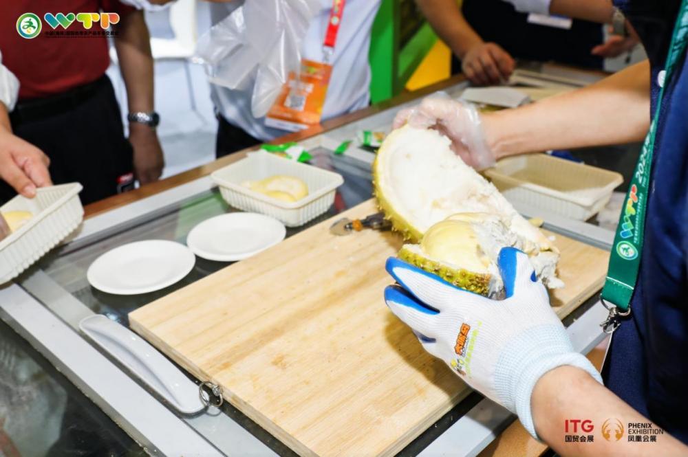现场有榴莲、火龙果、蜜瓜、芒果、凤梨等热带水果;手指柠檬、巧克力布丁果、龙贡果、冰淇淋果等高端果品;南美白对虾、草虾、罗氏沼虾、金鲳鱼、海南鲷等种苗和水产品;咖啡、茶叶、胡椒等热带经济作物;文昌鸡、和牛、无抗猪肉、天然富硒蛋等畜禽蛋类产品;智慧农业展区也成了科技创新的前沿阵地,新型的种植养殖技术、智能化的农业设备、高效的农产品加工工艺、智能灌溉系统、农产品溯源技术等一一亮相。