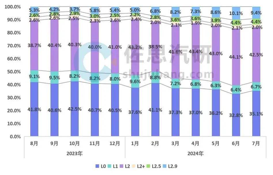 据佐思汽研数据显示,2024年搭载L2及以上的新车占比早已超过50%。这意味着,能实现自动跟车功能的自动驾驶,已经在汽车市场铺开。更高阶的智驾能力(城市NOA),在各路车企的争夺下,已经开始泛滥。无论“新势力”还是传统车企,都已经形成了“无智驾不高端”的共识。