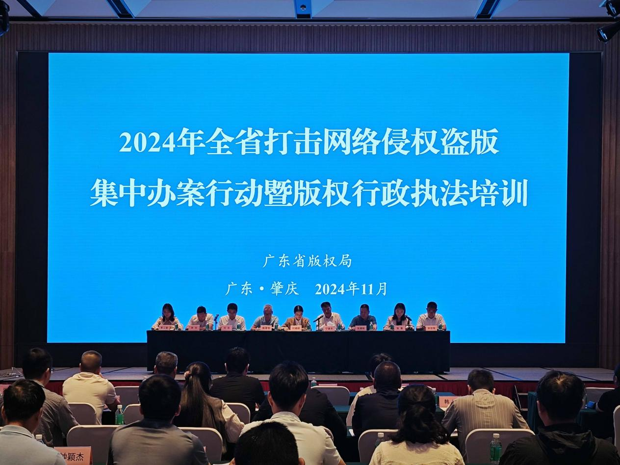 11月11日至15日,2024年全省打击网络侵权盗版集中办案行动暨版权行政执法培训在肇庆举办,“剑网”专项行动成员单位相关负责同志出席。