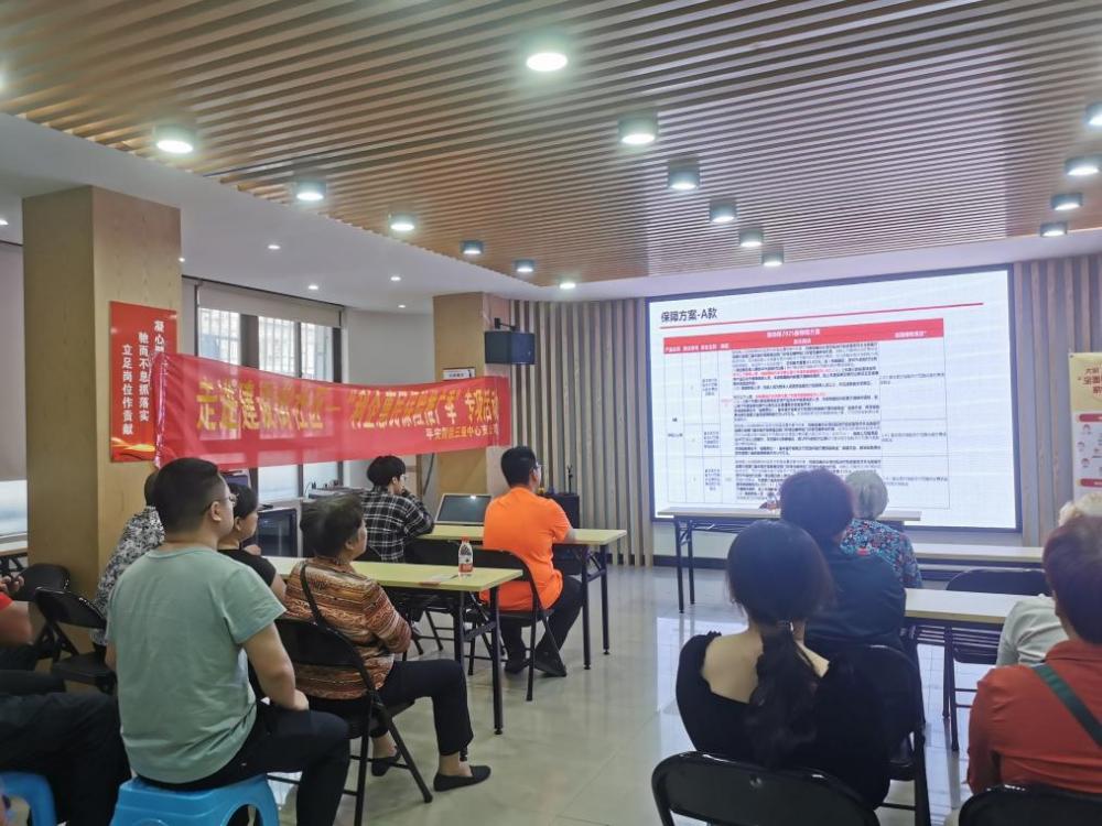 在两个社区居委会的支持下,平安财险三亚中心支公司骨干人员分别在群众街社区居委会、建设街居委会组织了专题宣讲会。会议邀请了三亚市保险行业协会秘书长和社区副书记到场致辞,专业讲师着重宣导了“惠琼保”和“惠家保”两款惠民保险产品,尤其针对参保条件、参保标准、办理材料、报销比例、参保渠道等内容,逐一进行答疑解惑,会后群众反响热烈,纷纷表示有意愿参保并向亲朋好友推荐,活动现场氛围热烈。