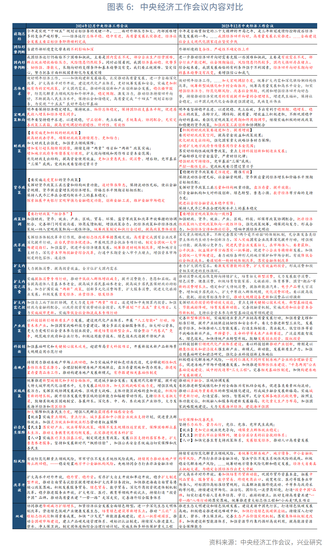下表为2024年与2023年中央经济工作会议内容对比。