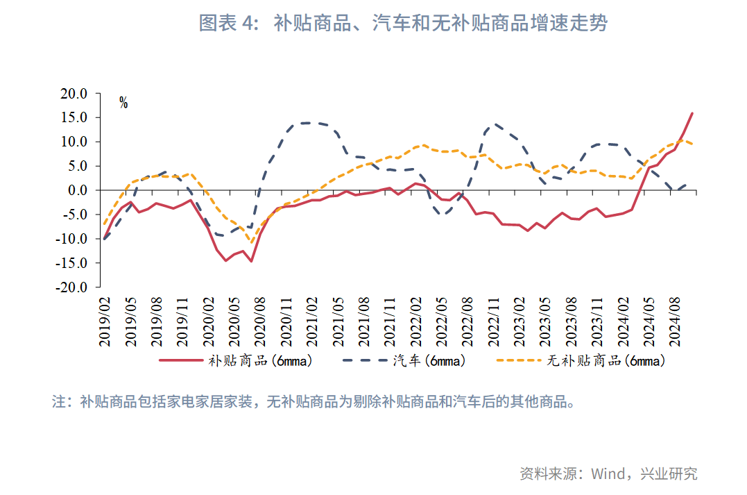 消费方面,一是完善社会保障,促进增收减负。会议要求,“实施提振消费专项行动,推动中低收入群体增收减负,提升消费能力、意愿和层级。适当提高退休人员基本养老金,提高城乡居民基础养老金,提高城乡居民医保财政补助标准。”二是增加财政与制度支持,释放消费潜力。会议提出,“加力扩围实施‘两新’政策,创新多元化消费场景,扩大服务消费,促进文化旅游业发展。积极发展首发经济、冰雪经济、银发经济。”“加力”意味着对两新政策的支持力度将上升,可能体现在特别国债用于两新的规模提高;“扩围”意味着两新政策支持的消费品范围可能扩容。2024年商务部等四部门联合印发的通知中,明确要求各地对个人消费者购买二级及以上能效或水效标准的冰箱、洗衣机、电视、空调、电脑、热水器、家用灶具、吸油烟机等八类家电产品给予以旧换新补贴。数据显示,以旧换新政策推出后,得到政策补贴的家电等消费品出现了亮眼的增长,政策成效斐然。未来全国层面支持的消费品范围可能向更多耐用品扩容,如智能手机、平板电脑等,地方层面的支持范围也将更加灵活。考虑到耐用品的使用寿命较长,补贴结束后可能出现消费退坡,可以将补贴领域向服务消费扩容,降低透支效应。