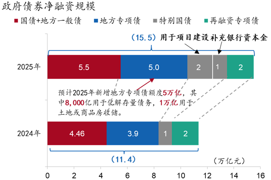 图2:2025年政府债券净融资规模或达15.5万亿