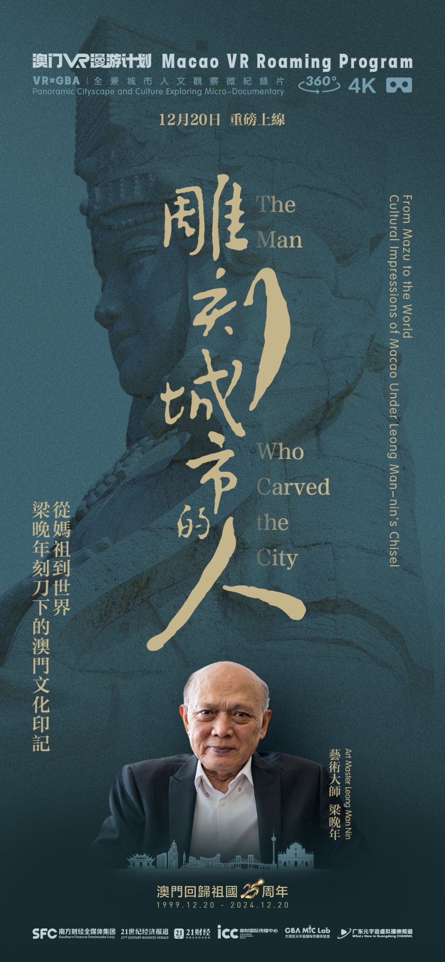 On the occasion of the 25th anniversary of Macao's return to China, the Southern Finance Omnimedia Corp. International Communication Center, the Greater Bay Area Metaverse International Communication Lab (GBA MIC Lab), and the 21st Century Business Herald App have launched a special 4K VR360° panoramic city and cultural micro-documentary titled VR✖GBA - From Mazu to the World|The Sculptor of the City: Artist Leong Man-nin. The documentary features the 2019 Miss Macao 1st Runner-Up, EMILY, as the host. Follow her as she explores Leong Man-nin's art and delves into the spiritual core of Macao, offering a unique, immersive perspective on the city's dynamic development. The micro-documentary will be released on both Chinese and international broadcasting platforms, as well as VR platforms, on December 20. Stay tuned!