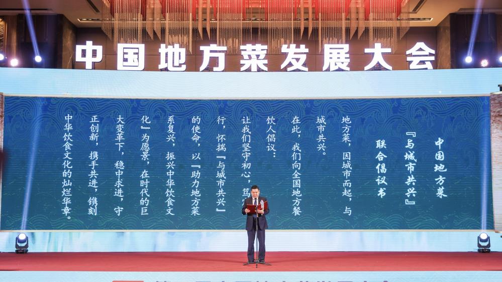 2024年12月17日,第四届中国地方菜发展大会主旨大会当日,中国地方菜发展大会发起人、寻宝记绍兴菜创始人张亮发起并宣读“中国地方菜‘与城市共兴’联合倡议书”,向全国地方菜餐饮企业倡议:与城市共兴,稳中求进,守正创新,携手共进。
